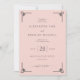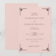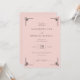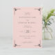 Cette invitation de mariage présente une mise en page symétrique avec un fond rose blush doux, créant une atmosphère élégante et chaleureuse. Le design comprend des motifs géométriques d'angle stylisés qui ajoutent une touche de sophistication sans surcharger le texte central. Un mélange de script élégant et de polices serif classiques met en valeur les noms et les détails de l'événement, assurant la lisibilité et un ton formel. Parfaite pour les couples recherchant une esthétique minimaliste mais raffinée, cette invitation préfigure une célébration mémorable.