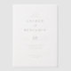 Cette élégante invitation de mariage présente un design minimaliste avec un fond blanc épuré, mettant en valeur la simplicité et la sophistication. La mise en page est structurée avec un texte centré de manière hiérarchique, utilisant des polices serif grasses pour les noms et la date, tandis qu'un script cursif ajoute une touche d'élégance au mot "et". Le texte noir sur une palette blanche crée un look classique, parfait pour transmettre la formalité et le raffinement. Idéale pour les couples recherchant une esthétique discrète mais sophistiquée, cette invitation donne le ton pour une célébration mémorable.