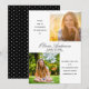 Cette invitation de remise de diplôme moderne et minimaliste propose deux photos carrées sur le devant. Un texte personnalisable vous permet d'ajouter le nom et l'école du diplômé ainsi que les détails de l'invitation à la fête. Le verso présente un motif de petits points blancs sur fond noir.