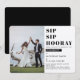 Invitation de fête de fiançailles avec photo chic "Sip Sip Hooray". Personnalisez en remplaçant la photo et le texte.