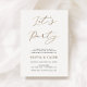 Cette annonce de mariage décontractée fait également office d'invitation à la réception de mariage. L'invitation à la réception recto-verso présente "Faisons la fête" en lettrage à motif de feuille d'or faux avec le texte annonçant le mariage des jeunes mariés et invitant les invités à une réception de mariage décontractée. Personnalisez avec votre photo au verso.