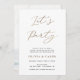 Cette annonce de mariage décontractée fait également office d'invitation à la réception de mariage. L'invitation de réception recto-verso présente "Faisons la fête" en lettrage de feuille de faux or avec un texte annonçant le mariage des jeunes mariés et invitant les invités à une réception de mariage décontractée. Personnalisez avec votre photo au verso.