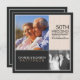 Des blocs modernes de noir et de blanc mettent en valeur deux photos du couple spécial. Utilisez une photo de mariage et la photo d'aujourd'hui pour un effet "à travers les années", deux photos actuelles ou deux anciennes photos du couple d'anniversaire - le choix vous appartient. Tout le texte peut être facilement personnalisé pour répondre à vos besoins.