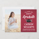 Partagez la joie d'un baccalauréat ou d'un collège avec ces photos personnalisées en rouge, blanc et noir annonces. (CONSEIL EN MATIÈRE DE PLACEMENT D'IMAGE : Une façon simple de centrer une image exactement comme vous voulez est de la rogner avant de la télécharger sur le site Zazzle.) Ce modèle est simple à customiser avec n'importe quel libellé de votre choix, comme les détails de l'invitation du parti, le nom des parents, les distinctions spéciales, le titre du diplôme, la citation inspirante préférée, les coordonnées du diplômé, les plans d'études futurs ou le nouveau poste. S'il n'y a pas de texte non voulu simplement le supprimer. Le design comprend un arrière - plan à l'ombre rouge, un casquette de tableau de mortier noir, une calligraphie manuscrite, une élégante typographie moderne et une photo de votre choix, telle qu'une image ou une image de haut niveau de la cérémonie de début. Ces élégantes cartes de faire-part de remise de diplômes sont un moyen élégant de partager votre fête spéciale avec votre famille et vos amis. Félicitations au diplômé !