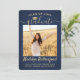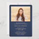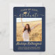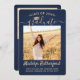 Partagez la joie d'un baccalauréat ou d'un collège avec ces annonces personnalisées 2 photo bleu marine et or. (CONSEIL EN MATIÈRE DE PLACEMENT D'IMAGE : Une façon simple de centrer une image exactement comme vous voulez est de la rogner avant de la télécharger sur le site Zazzle.) Ce modèle comprend le nom du diplômé, l'année de cours et l'école, et il est facile de customiser avec n'importe quel libellé de votre choix, comme les détails de l'invitation du parti, le nom des parents, les distinctions spéciales, le titre du diplôme, la citation inspirante préférée, les coordonnées du diplômé, les plans de formation futurs ou le nouveau poste. S'il n'y a pas de texte non voulu simplement le supprimer. Le design présente un arrière - plan bleu foncé, un casquette de tableau de mortier imitation feuille, une calligraphie manuscrite, une typographie minimaliste moderne et deux photos de votre choix, telles que des images de haut niveau ou des images de la cérémonie de début. Veuillez noter que l'or est imprimé en couleur et non en métal. Ces élégantes cartes de faire-part de remise de diplômes sont une façon branchée et chic de partager votre fête spéciale avec votre famille et vos amis. Félicitations au diplômé !