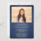 Partagez la joie d'une remise de diplôme de lycée ou de collège avec ces faire-part personnalisés 2 photos bleu marine et or. (ASTUCE DE PLACEMENT D'IMAGE : un moyen simple de centrer une image exactement comme vous le souhaitez est de la rogner avant de la télécharger sur le site Web de Zazzle.) Ce modèle comprend le nom du diplômé, l'année de promotion et l'école, et est simple à personnaliser avec la formulation de votre choix, comme les détails de l'invitation à la fête, les noms des parents, les honneurs spéciaux, le titre du diplôme, la citation inspirante préférée, les coordonnées du diplômé, les projets d'études futures ou le nouveau poste. Si un texte n'est pas souhaité, il suffit de le supprimer. Le design présente un fond bleu foncé brossé, une casquette de diplômé en simili-feuille d'or, une calligraphie de style manuscrit, une typographie minimaliste moderne et deux photos de votre choix, telles que des photos de fin d'année ou des images de la cérémonie de remise des diplômes. Veuillez noter que l'or est une couleur