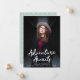 Annonces de fin d'études branchées présentant la photo verticale du diplômé avec "Adventure Awaits" en lettres manuscrites blanches. Personnalisez le devant de l'annonce d'obtention de diplôme d'Adventure Await en ajoutant le nom du diplômé, le nom de l'école et l'année de fin d'études. La faire-part s'inverse pour afficher un élégant motif de treillis vert menthe et blanc.