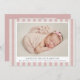 Fêtez l'arrivée de votre petit lot de joie avec nos cartes photos rayés rose mauve et beige. Les annonces de naissance à la ferme affichent la photo de votre bébé sur le devant avec un arrière - plan de rayures de lin rose mauve et beige. Personnalisez l'avant des annonces en ajoutant le nom et l'information sur la naissance du bébé (date de naissance, longueur, poids, etc.). La simple faire-part de naissance fille revient pour présenter une photo supplémentaire avec espace pour un message en texte blanc avec un arrière - plan rose mauve.