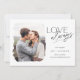 Une carte de faire-part fiançailles élégante et moderne, avec une seule photo verticale ou portrait dans un cadre unique peint en brosse. "L'amour toujours" apparaît à côté du script écrit à la main, avec votre faire-part personnalisée (avec "nous sommes engagés"), les noms, et des détails supplémentaires.
