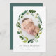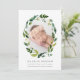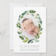 Elegant botanical birth announcements feature your sweet little one's photo encircled by an oval wreath of lush green foliage and white flowers. Personalize with your baby's name and birth stats beneath.