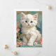 Carte avec un chat blanc dans le style d'Alphonse Mucha ! Ce chaton aux yeux bleus pose avec des fleurs roses et des couvertures bleues. Un cadeau fabuleux pour les amoureux de les chats et les collectionneurs Art Nouveau !