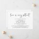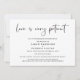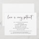 Annonce minimale moderne de report de mariage et de changement de plans en noir et blanc. "l'amour est très patient" est écrit dans un script chic et stylé et vous pouvez facilement personnaliser si la date du mariage a été reportée ou si d'autres détails ont été modifiés.