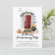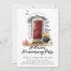 Amusant Halloween thème ménage soirée invitation. Notre design comporte notre propre porte rouge aquarelle peinte à la main avec des colonnes blanches. Accentué de parements gris, d'un porche en bois naturel, et d'un paillasson noir et blanc ! L'avant de la maison est décoré de citrouilles d'Halloween, toiles d'araignée, chauves-souris et un pot de fleur noir de chaudron. Customisez avec votre nouveau numéro de maison à l'avant de la porte avec les détails de la fête. L'arrière de l'invitation d'Halloween comporte un motif de chauve-souris amusant. Toutes les illustrations sont des oeuvres originales peintes à la main par Moodthology.
