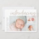 Une carte faire-part de naissance élégante et moderne avec trois photos (une carré et deux horizontales), avec "introduction" en haut dans la typographie de script de brosse à lettres à la main. Personnalisez avec le nom de votre bébé et les statistiques de naissance sur le côté gauche. Ajoutez un message personnel à l'arrière, ainsi qu'une photo supplémentaire.