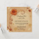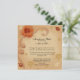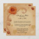 Ce beau design, appelé Rose Orange en Automne, serait une façon élégante et dramatique de définir le ton de votre anniversaire de mariage ou événement. Le fond est d'une couleur crème foncée avec un ruban couleur pêche foncé et des feuilles colorées d'automne. Dans le coin supérieur gauche se trouve une magnifique rose orange.