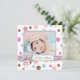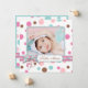 Douce carte photo d'annonce avec impression à pois et ruban rayé coordonné et garnitures de tétine bébé en 3D