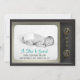 Faire annonce de naissance avec photo rétro de bébé mettant en vedette un vieux poste de télévision vintage. Le téléviseur à console en bois possède des boutons de réglage à tourner à l'ancienne. Sur l'écran du téléviseur, il y a un espace pour ajouter une photo de votre nouvelle petite star. Dans la moitié inférieure de la zone de photo, un texte personnalisable en police de caractères sarcelle clair et gris foncé où vous pouvez ajouter le nom du bébé, la date de naissance et le poids de naissance. Le verso de l'annonce de naissance comporte des rayures de couleurs rouge, sarcelle bleue et blanche. C'est une annonce de naissance photo bébé unique et amusante. Rendez la photo du bébé en noir et blanc pour lui donner une véritable ambiance rétro vintage !