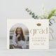Annoncez votre diplôme à votre famille et à vos amis avec cette carte d'annonce de remise de diplôme photo personnalisable. Elle présente une typographie minimaliste dorée et un cadre photo en arche. Personnalisez cette annonce de remise de diplôme boho en ajoutant une photo, un nom, une école et d'autres détails. Cette annonce de remise de diplôme photo moderne est disponible sur d'autres papiers cartonnés.