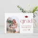Annoncez votre remise de diplôme à votre famille et à vos amis avec cette carte d'annonce de remise de diplôme photo personnalisable. Elle présente une typographie minimaliste rouge et un cadre photo en arche. Personnalisez cette annonce de remise de diplôme bohème en ajoutant une photo, un nom, une école et d'autres détails. Cette annonce de remise de diplôme photo moderne est disponible sur d'autres types de papier cartonné.