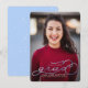 Votre diplômé brillera sur cette annonce de remise de diplôme à photo unique. Elle présente une photo à fond perdu avec un texte en faux foil bleu clair dessus. Le nom du diplômé, l'année et le nom de l'école sont tous modifiables.