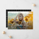 Une annonce de remise de diplômes photo Script Moderne 2 avec une police manuscrite et une photo horizontale pleine page à l'avant avec le nom et les détails de la remise de diplômes. L'arrière présente un motif de grille moderne. Cliquez sur le bouton modifier pour personnaliser ce design.
