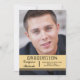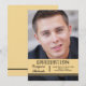 Une annonce de remise de diplômes moderne avec le mot "Graduation" dans un motif complexe. La base dorée comporte deux lignes horizontales en bas.