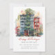 Cette annonce de déménagement pour les fêtes de Noël présente la phrase "Joyeuses Fêtes depuis notre nouvelle maison" avec une belle aquarelle d'un appartement en ville avec un grand sapin de Noël. L'annonce est parfaite pour être envoyée aux amis et à la famille pendant la période des fêtes pour leur faire savoir votre nouvelle adresse. Le recto de l'annonce présente la phrase et la scène d'aquarelle de rue enneigée en ville, et comprend votre nouvelle adresse et vos coordonnées. La conception générale est festive et charmante, et l'annonce est sûre de mettre un sourire sur le visage de vos proches.