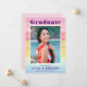 Célébrez votre diplômé avec ce faire-part coloré de graduation photo en aquarelle couleurs arc-en-ciel! Personnalisez le devant des annonces de graduation de l'arc-en-ciel d'aquarelle en ajoutant le nom du diplômé, le nom de l'école et l'année de graduation. Pour une demande personnalisée, contactez-nous par l'intermédiaire du magasin ou écrivez à citronelladesign@gmail.com