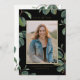 Annoncez votre graduation à votre famille et à vos amis avec cette carte de faire-part de graduation photo personnalisable. Il présente des feuilles d'aquarelle sur arrière - plan noir. Personnalisez ce faire-part de graduation photo boho en ajoutant une photo, un nom, une école et d'autres détails. Ce faire-part de graduation de photo botanique est disponible dans d'autres cartons.