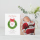Introduisez votre petit paquet de joie ! Cette carte de Noël pour bébé comporte une couronne d'aquarelle peinte à la main et un joli arc rouge. Ajoutez l'adorable photo de votre bébé, ce qui le rend parfait pour partager les nouvelles excitantes avec vos amis et votre famille.