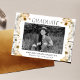 Annoncez votre diplôme avec notre faire-part de graduation photo moderne et design. Le design présente la photo du diplômé au milieu encadrée par une bordure de cristaux d'aquarelle peints dans les tons or et ambre. "Graduate" est affiché en haut dans une police serif moderne noire. Personnalisez le faire-part unique de graduation en ajoutant la photo, le nom, le nom de l'école et l'année de graduation du diplômé. La faire-part s'inverse pour afficher un bel arrière - plan d'aquarelle dorée et ambre.