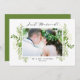 Marié ! Annoncez votre mariage à votre famille et à vos amis avec cette photo personnalisable qui vient d'être mariée carte. Il dispose d'un script lunatique et d'un cadre de verdure aquarelle. Cette carte verte mariée est parfaite pour les mariages du printemps et de l'été. Personnalisez en ajoutant des noms, des photos et d'autres détails.
