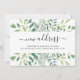 Faites connaître votre nouvelle adresse à votre famille et à vos amis avec cette carte de faire-part botanique. Il est décoré avec de l'aquarelle, de la verdure d'eucalyptus et une typographie stylisée. Facile à personnaliser. Aquarelle originale © Michele Davies.