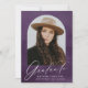 Annoncez la réussite de votre diplômé avec cet élégant faire-part de graduation, avec un cadre élégant en arc qui met en valeur leur photo contre un arrière - plan d’aquarelle violet riche. "Graduate" est écrit avec élégance dans la calligraphie moderne blanche, avec le nom du diplômé, l’école et l’année de diplôme affiché ci-dessous pour une touche personnelle. Le dos de la carte présente une mise en page en grille avec six photos carrés, parfaite pour partager des souvenirs préférés. Ce faire-part de diplôme de photographie personnalisé est un choix sophistiqué pour les diplômés du secondaire et du collège, rendant leur jalon encore plus spécial.
