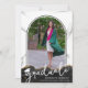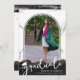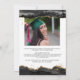 Créez un faire-part photo de graduation étonnant avec une photo d'arc tendance sur le devant en noir et or accentué avec une parties scintillant en faux or brillant avec une typographie manuscrite chic pour le titre GRADUATE accentué avec une casquette de graduation ou mortier en blanc. Le côté arrière comprend une photo et votre texte personnalisé pour inclure des détails sur votre diplômé. ASSISTANCE : Pour obtenir de l'aide sur la modification ou la personnalisation de la conception, le changement de couleur, le redimensionnement ou le transfert de la conception à un autre produit, contactez le concepteur AVANT DE COMMANDER via l'onglet MESSAGE Conversation Zazzle ci-dessous ou envoyez un courriel à makeitaboutyoustore@gmail.com.