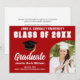 Cette invitation de fête de remise de diplôme de fin d'études personnalisée rouge et blanc moderne ou annonce de diplômé présente une typographie blanche élégante du nom de votre collège pour la promotion de 2026. Personnalisez avec votre année de remise de diplôme sous le script manuscrit noir chic et la casquette de diplômé noire pour de belles cartes. Ajoutez les détails de votre fête au dos.