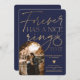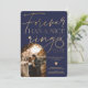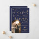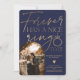 Forever a une belle bague à elle, Script moderne photo arche faux feuille d'or et bleu marine fiançailles faire-part avec une illustration fiançailles anneau. Toutes les couleurs sont modifiables.