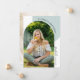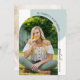Cette faire-part moderne de graduation comporte une photo voûtée branchée. Le design est accentué avec une couleur verte à la sauge légère et du texte de style manuscrit. L'arrière offre une photo complète avec du texte personnalisé pour votre diplôme et les détails des plans futurs.