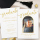 Célébrez le collège ou le lycée de votre fille avec une arche à la mode moderne Carte de Faire-part de remise de diplômes en écriture d’or de photo Honorer le succès académique de votre fille avec cette élégante photo en arc de cercle Modern College ou la carte de Faire-part d’études secondaires, conçue exclusivement par l’artiste Catherine Sweetman. Cette carte de graduation personnalisée présente une calligraphie de script or tendance sur un arrière - plan blanc classique, créant un look intemporel et sophistiqué parfait pour tout diplômé. Le recto de la carte affiche le nom de votre fille et les détails de graduation dans des lettres d’or stylisées accrocheuses, tandis que la disposition en arc d’or sur un blanc élégant ajoute une touche unique et contemporaine. Customisez facilement le modèle avec une photo chère de votre diplômé, ce qui en fait un véritable souvenir personnel. Le dos de la carte comprend de l'espace pour des détails supplémentaires de graduation ou un message sincère, mis dans la typographie moderne pour une présentation propre et poli. Parfait pour envoyer un courrier à des amis et à la famille ou y compris avec des invitations à la fête de remise de diplômes, ce faire-part de remise de diplômes photo est une façon élégante de partager votre fierté et votre joie. Idéale pour les diplômes du secondaire, du collège ou de l'université, les débuts du travail et d'autres célébrations de graduation, cette carte est un moyen mémorable de marquer cette étape majeure.