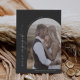 Ce faire-part photo fiançailles moderne en arc de cercle gris fait la carte faire-part simple parfaite. Le design bohème gris foncé présente une typographie industrielle unique avec style vintage minimaliste. Personnalisez l'avant de la carte avec une photo, et vos noms.