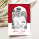 Célébrez le jalon de votre diplômé avec cette faire-part de graduation simple et élégante. Présentant la photo du diplômé à l'intérieur d'un cadre élégant en arc, ce design moderne présente un arrière - plan de bloc de couleur rouge et blanc audacieux. "Graduate" est affiché en lettres modernes rouges frappantes, avec le nom du diplômé, l’école et l’année de graduation soigneusement présenté ci-dessous. Parfait pour les diplômés du secondaire ou du collège, ce faire-part élégant et contemporain est une façon mémorable de partager les nouvelles passionnantes avec la famille et les amis.
