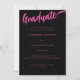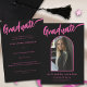 Célébrez le baccalauréat, le collège ou l’université de votre fille avec une belle carte de Faire-part de script élégante en arc photo noir et rose chaud. Marquez la remise de diplômes de votre fille avec cette Carte de Faire-part photo moderne de Calligraphie de Script rose chaud, conçue pour capturer l’esprit de l’occasion. Doté d'un élégant script de calligraphie rose sur un arrière - plan noir frappant et d'une élégante arche rose chaud, cette carte dégage style et charme. L’avant présente le mot "diplômé" en calligraphie de script rose-chaud élégante, complétant le nom de votre fille et les détails de graduation en typographie contemporaine rose-chaud sur un arrière - plan noir frappant, tandis que l’arrière met en évidence des informations supplémentaires en typographie rose-chaud moderne. Cette carte comprend un modèle photo facile à utiliser, vous permettant de la personnaliser avec une photo chère de votre diplômé, ce qui en fait le sien unique. OEuvre d'art originale unique et design créé par l'artiste Catherine Sweetman, cette carte est une façon époustouflante de commémorer son succès universitaire et de partager l'occasion joyeuse avec des amis et la famille.