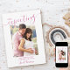 Faire-part Attente Photo Élégant Script Marine Rose Grossesse