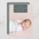 Le faire-part de naissance moderne et chic est doté d'une seule photo verticale/portrait à fond saigné avec un élément de bannière rectangulaire en haut, portant le nom du bébé, la date de naissance et les statistiques de naissance. Ajoutez un message personnel à l'arrière, ainsi qu'une photo supplémentaire.