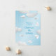 Cette carte d'invitation à la fête d'anniversaire d'avion en papier amusant présente divers avions en papier blanc plié illustrés avec des pistes de vol en pointillé blanc et blanc, au milieu de nuages blancs et bouffants, sur un arrière - plan en dégradé bleu ciel - personnalisez avec vos détails de fête - par katz_d_zynes