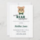 Vous avez un bébé en route ? Destiné à être un ours ? Un thème qui conviendra parfaitement à un baby shower ! Cette mignonne invitation est faite en or vert et jaune avec un adorable petit ours garçon - avec cravate - en haut. Personnalisez avec les détails de naissance de votre bébé et vos noms et ajoutez une photo verticale à l'arrière.