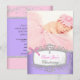 Faire-part Baby Girl rose pourpre Christening Baptism Cross