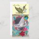 Design floral élégant et amusant de style vintage avec un bébé et cigogne volant parmi les belles roses, roses rouges, fleurs de printemps bleu turquoise et une pierre à gemme 3D vibrante et brillante par Bulgan Lumini (c).