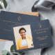 Design élégant style marine en cuir bleu et cuivre or école de droit modèle de la carte de graduation de l'école de droit avec votre photo et texte personnalisé. ++++++++++++ Facile à personnaliser des deux côtés !