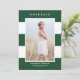 Annoncez votre diplôme avec ce faire-part de graduation photo personnalisable. Il dispose d'une motif à rayures vertes et blanches. Personnalisez ce faire-part moderne de graduation en ajoutant une photo, nom, école, année et d'autres détails. Cette carte de faire-part de graduation photo est disponible dans d'autres cartons.